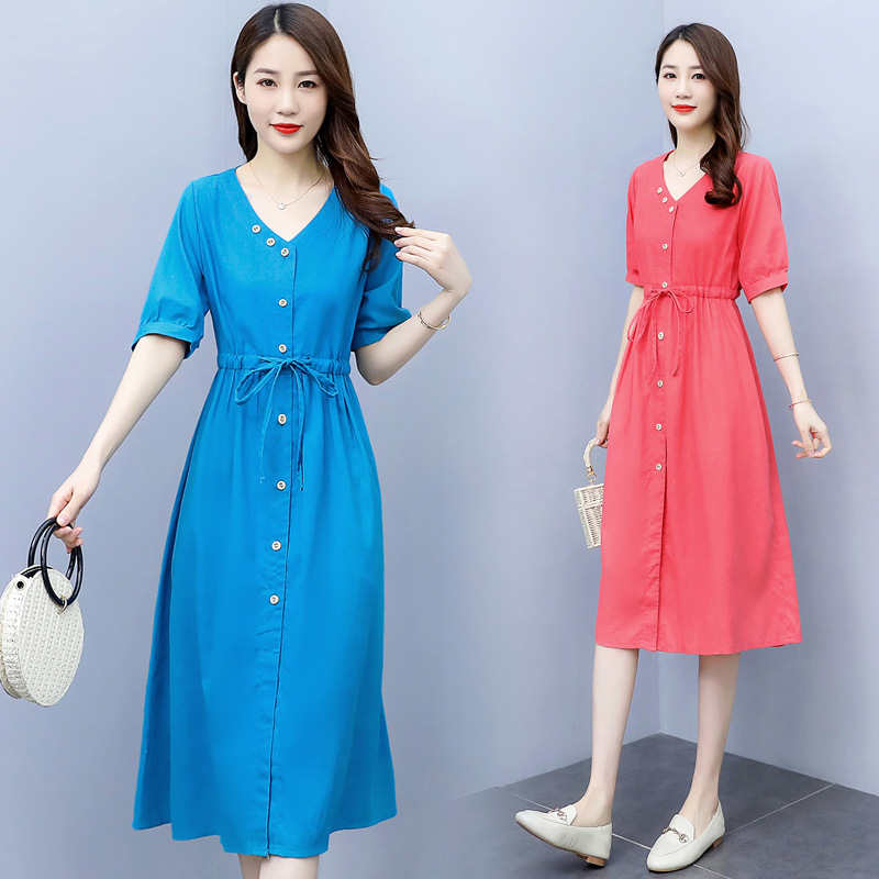 Cotton and linen dress for women, mid-length, summer 2021 new style, belly-covering, waist-slimming, A-line skirt, stylish, age-reducing, mother's wear